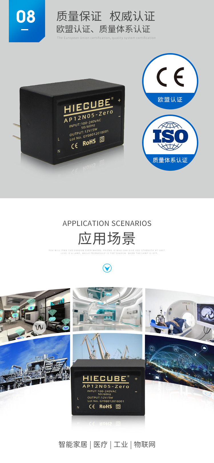 品牌:hiecube/高能立方 型号:ap12n05-zero 隔离耐压:3000vac 输出电压精度:±1% 电源类别:工业级acdc电源模块 模块质保年限:3年