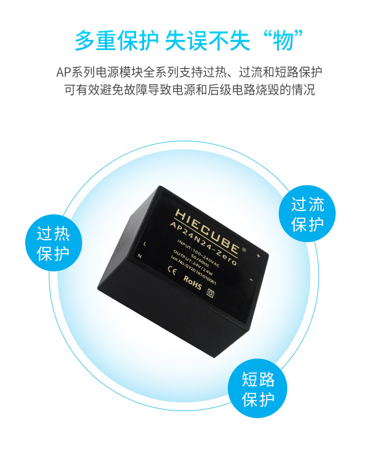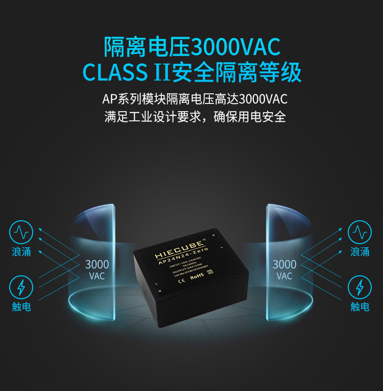 品牌:hiecube/高能立方 型号:ap24n24-zero 隔离耐压:3000vac 输出电压精度:±1% 电源类别:工业级acdc电源模块 模块质保年限:3年