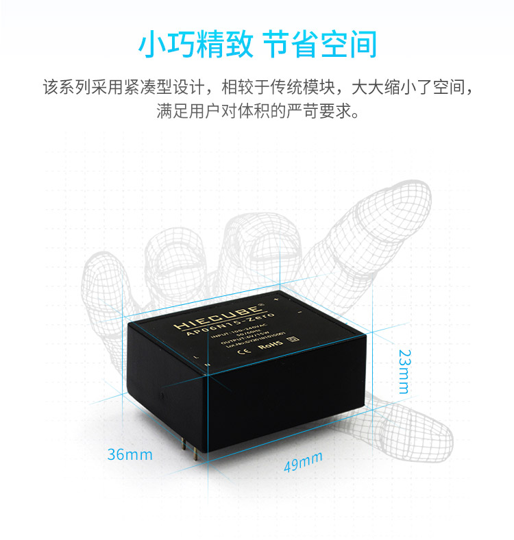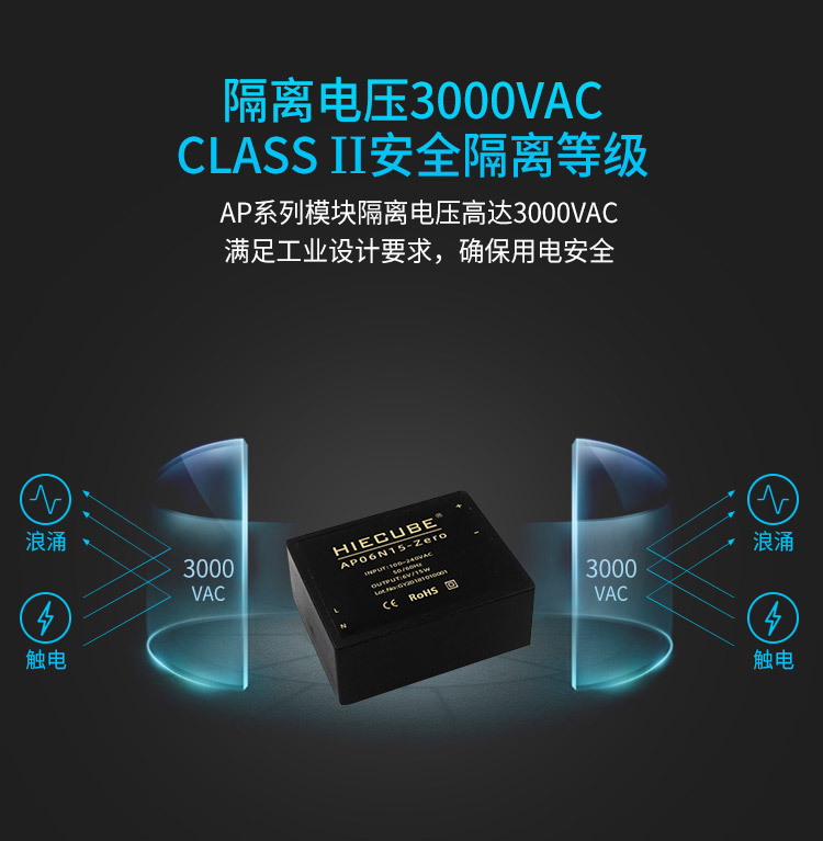品牌:hiecube/高能立方 型号:ap06n15-zero 隔离耐压:3000vac 输出电压精度:±1% 电源类别:工业级acdc电源模块 模块质保年限:3年