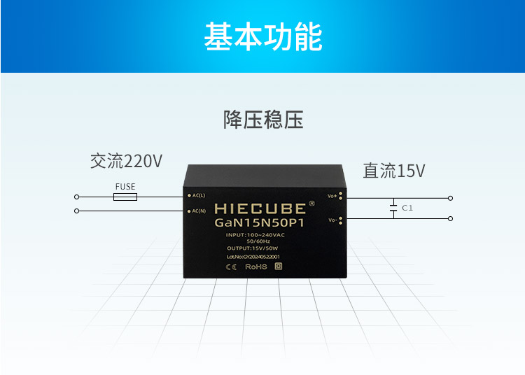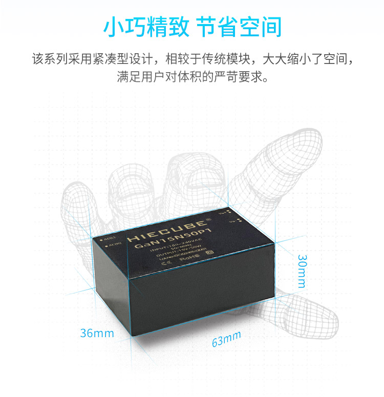 品牌:hiecube/高能立方 型号:gan15n50p1 隔离耐压:3000vac 输出电压精度:±1% 电源类别:ac-dc电源模块 模块质保年限:三年