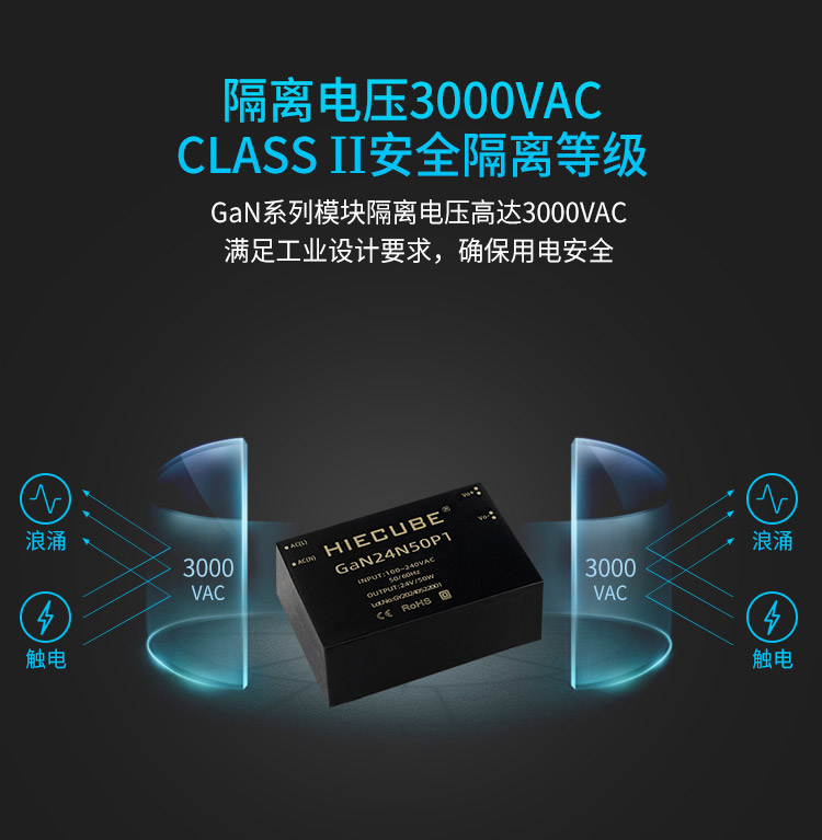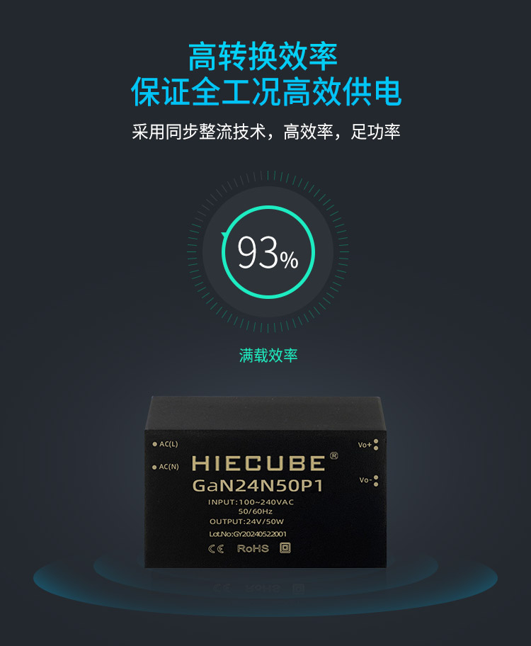 品牌:hiecube/高能立方 型号:gan24n50p1 隔离耐压:3000vac 输出电压精度:±1% 电源类别:ac-dc电源模块 模块质保年限:三年