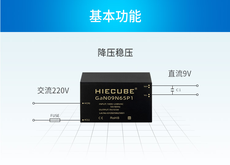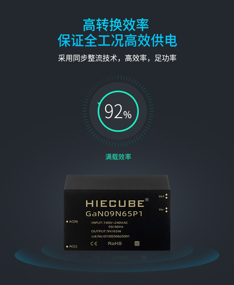 品牌:hiecube/高能立方 型号:gan09n65p1 隔离耐压:3000vac 输出电压精度:±1% 电源类别:ac-dc电源模块 模块质保年限:三年