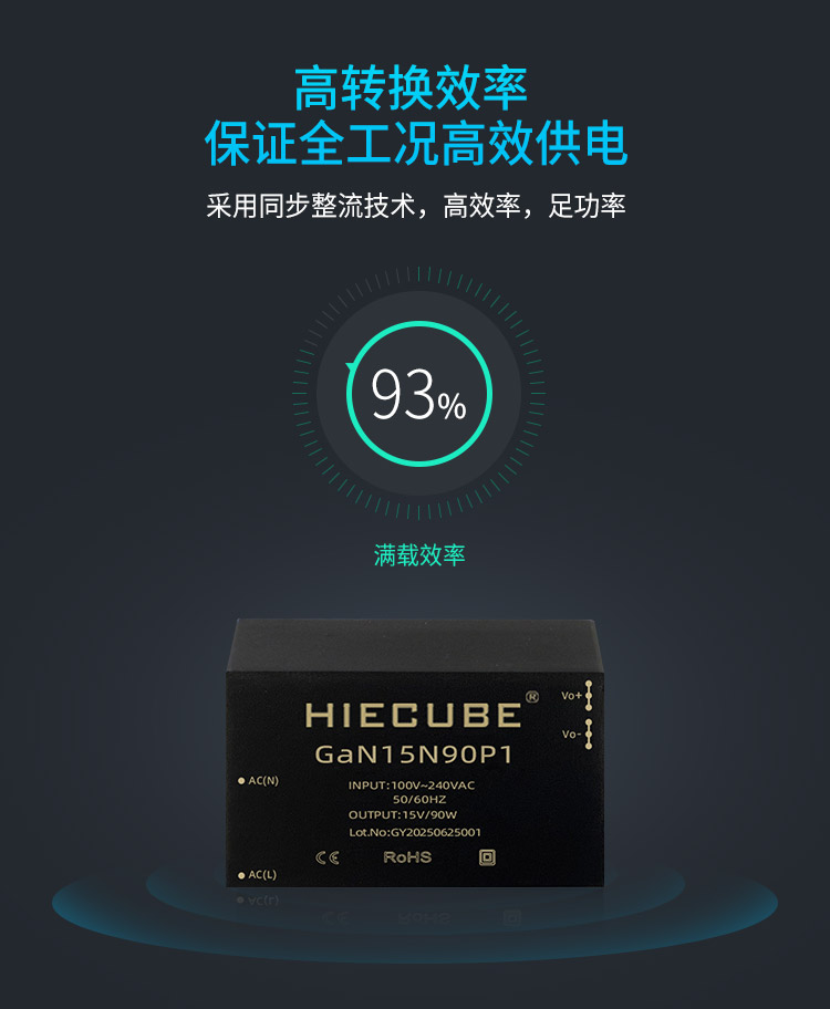 品牌:hiecube/高能立方 型号:gan15n90p1 隔离耐压:3000vac 输出电压精度:±1% 电源类别:ac-dc电源模块 模块质保年限:三年