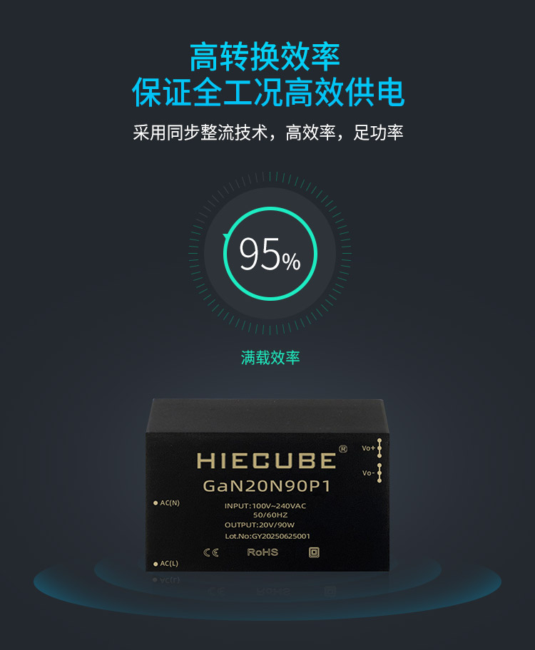 品牌:hiecube/高能立方 型号:gan20n90p1 隔离耐压:3000vac 输出电压精度:±1% 电源类别:ac-dc电源模块 模块质保年限:三年