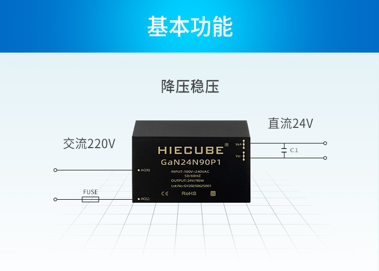 品牌:hiecube/高能立方 型号:gan24n90p1 隔离耐压:3000vac 输出电压精度:±1% 电源类别:ac-dc电源模块 模块质保年限:三年